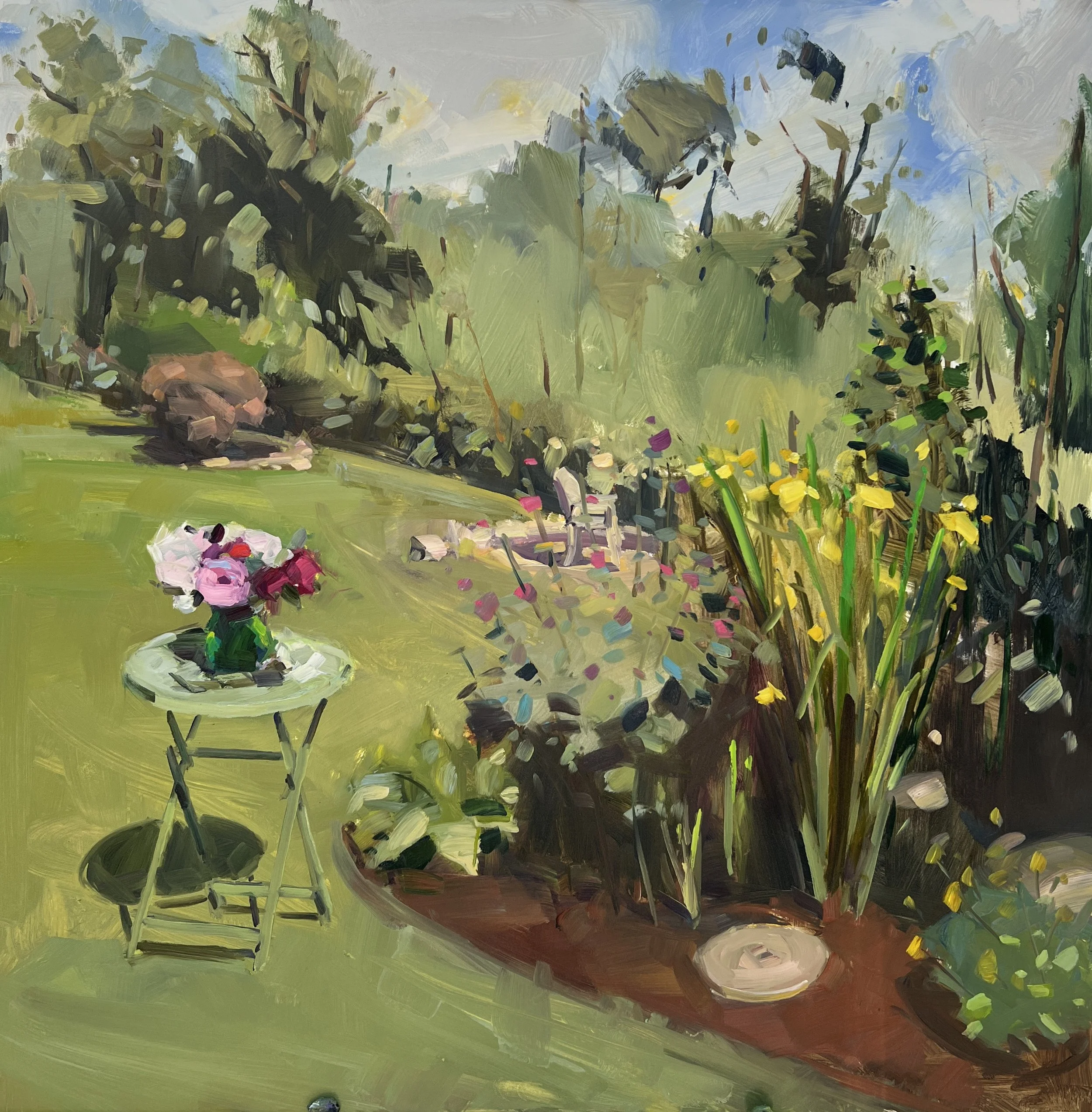 Amy Brnger, from Eliot, Maine, has painted still life, flowers, interiors and landscape for as long as she has been an artist. She enjoys painting flowers from her garden, interior views of her home, and forgotten, overlooked landscape views.