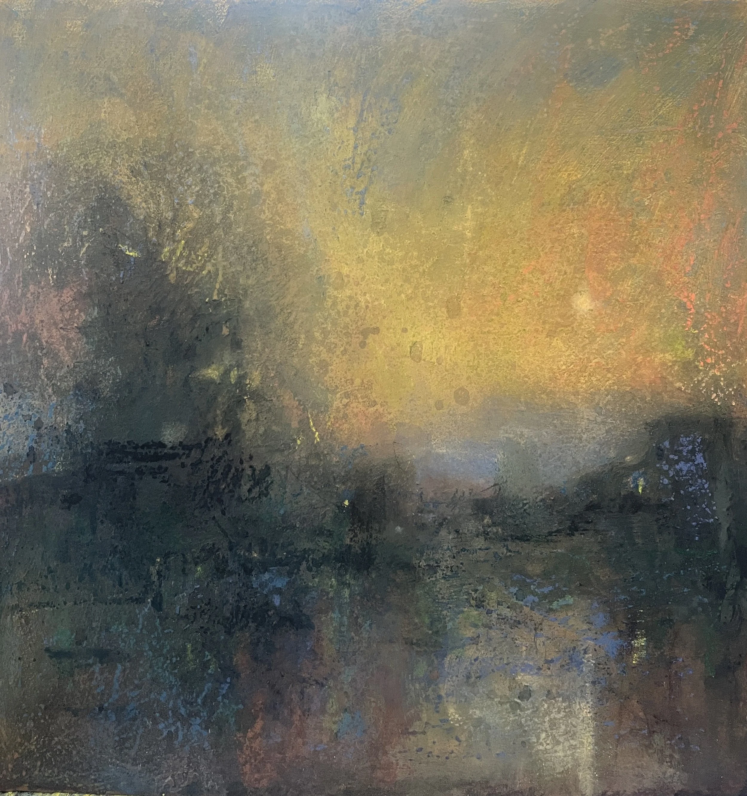 While Loriann still paints outdoors, much of her work relies on her memory. Her goal is not to create a specific place, rather a peaceful radiance, and a glow of light remembered. Later, in the studio, she uses her plethora of small paintings to form new concepts and experiment with color vibration. She says, “It is about having a dialogue with the painting. It talks and I listen.” As time has passed her work is less about the specific and more about the transcendental. While Loriann’s subject is the Mid-Atlantic trees, hills, and sky, her newer work is increasingly, and beguilingly, unnaturalistic and soothing.